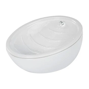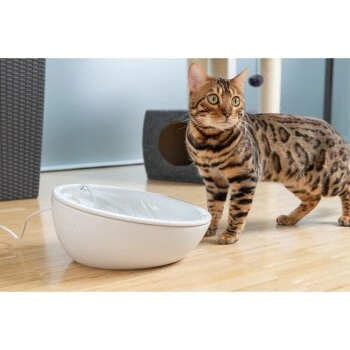 Der Trinkbrunnen ist aus hochwertigem, hygienischem Keramik gefertigt und lässt sich dadurch besonders leicht reinigen. Nachdem das Netzkabel, die Pumpe und der Filter entfernt wurden, können Ober- und Unterschale in der Spülmaschine gereinigt werden.