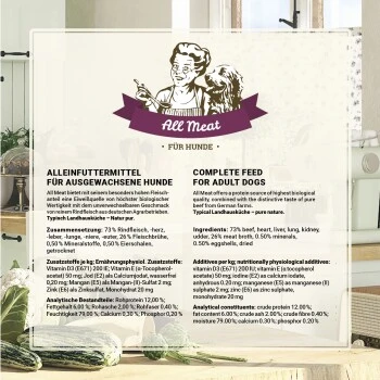 All Meat bietet mit seinem besonders hohen Fleischanteil eine Eiweißquelle von höchster biologischer Wertigkeit mit dem unverwechselbaren Geschmack von reinem Rindfleisch aus deutschen Agrarbetrieben.
