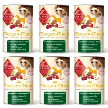 Das ChronoBalance Morgen-Menü ist ein getreidefreies Hundefutter, das aufgrund seiner Monoproteinquelle besonders gut für empfindliche Hunde geeignet ist. Gerade Allergiker profitieren von der Rezeptur mit Pferd mit hohem Fleischanteil. Die hochwertigen Zutaten sind für eine Fütterung Ihres Hundes am Morgen zusammengestellt. Damit füttern Sie Ihren Hund mit einem Premium-Futter, das ihm die Nährstoffe zu dem Zeitpunkt zuführt, wenn er sie optimal verwerten kann. Verwöhnen Sie Ihren Hund mit diesem Frühstück!