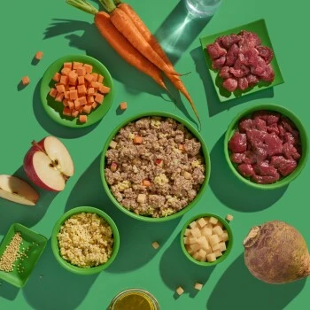 In unser Super-Premium Nassfutter kommen nur allerbeste Zutaten in Lebensmittelqualität. Hochwertiges Muskelfleisch, frisches Obst und Gemüse, wertvolle Öle und unser eigens entwickelter Vitamin- und Mineralstoffmix. Keine Geschmacksverstärker, keine Farbstoffe, keine Konservierungsstoffe, keine Schlachtabfälle oder Fleischmehle. Aus diesem Grund riecht es auch so gut – eben wie selbst gekocht!