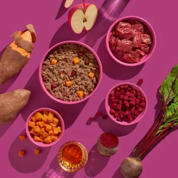 In unser Super-Premium Nassfutter kommen nur allerbeste Zutaten in Lebensmittelqualität. Hochwertiges Muskelfleisch, frisches Obst und Gemüse, wertvolle Öle und unser eigens entwickelter Vitamin- und Mineralstoffmix. Keine Geschmacksverstärker, keine Farbstoffe, keine Konservierungsstoffe, keine Schlachtabfälle oder Fleischmehle. Aus diesem Grund riecht es auch so gut – eben wie selbst gekocht!